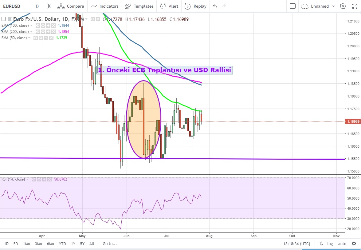 1.1852 Haziran ECB toplantısındaki Euro satış hareketinin başladığı ve Draghi'nin faiz artışı için 2019 sonunu işaret ettiği seviye