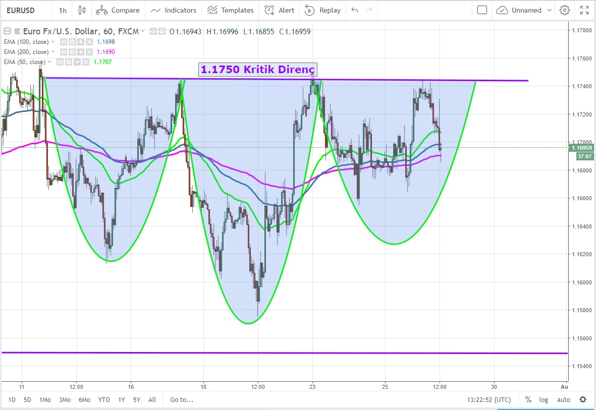 Draghi'den beklediği desteği bulamayan parite kritik direnci olan 1.1750 direncini geçemedi ve formasyon şu an için tamamlanmamış durumda