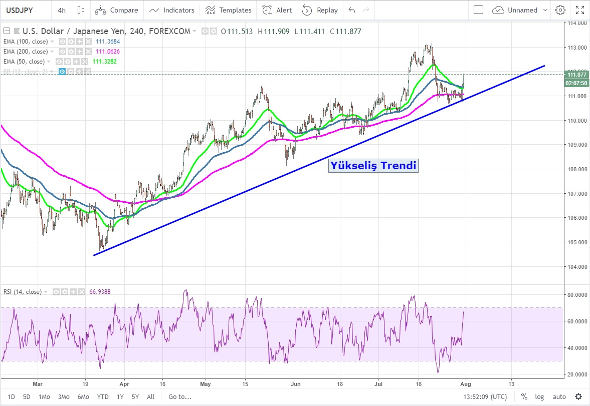 Ek olarak akşam saatlerinde ABD başkanı Donald Trump'ın ticaret savaşları konusunda Çin ile tekrar görüşmeye başlayacağını açıklaması https://www.cnbc.com/2018/07/31/us-and-china-reportedly-seeking-to-restart-talks-to-avert-trade-war.html ile güvenli liman desteğini de şimdilik kaybeden JPY için kuşkusuz daha iyi zamanlar olmuştu.