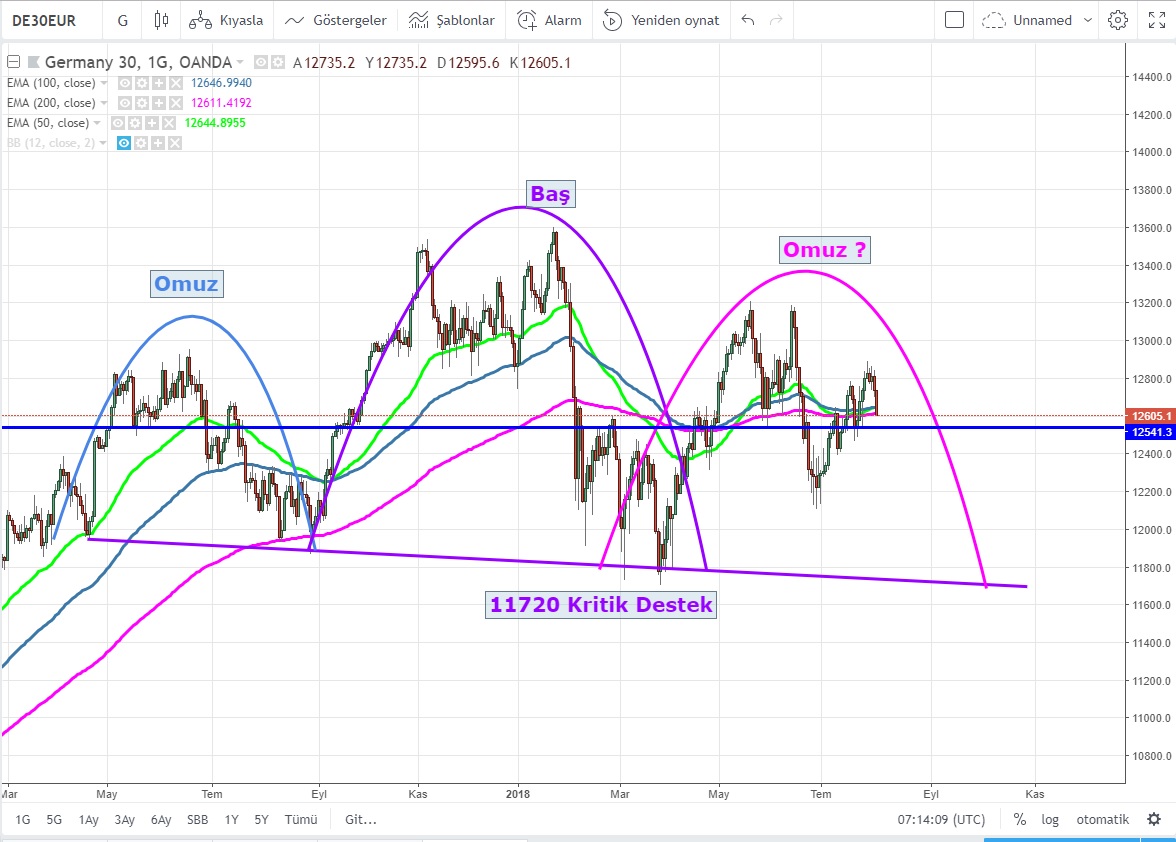 Ticaret savaşları ve Avrupa Bölgesi'nin yavaşlama eğilimine girmesi ile teknik olarak tehlike çanları çalmaya başlayan DAX Futures grafiklerini incelediğimizde