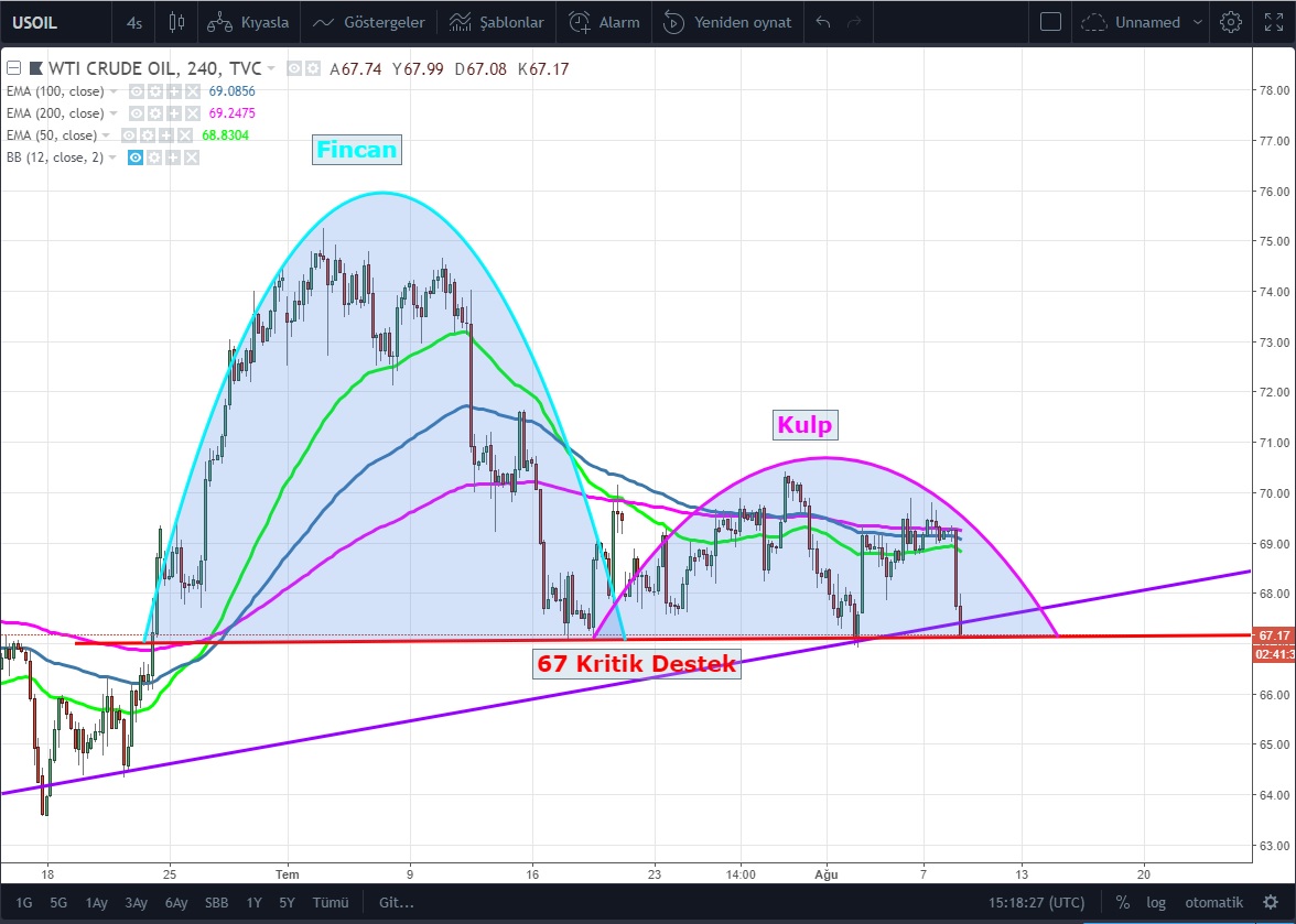 Daha kısa vadede fincan kulp formasyonu oluşturan aktif vadeli kontratlar için kritik destek 67 USD seviyesi