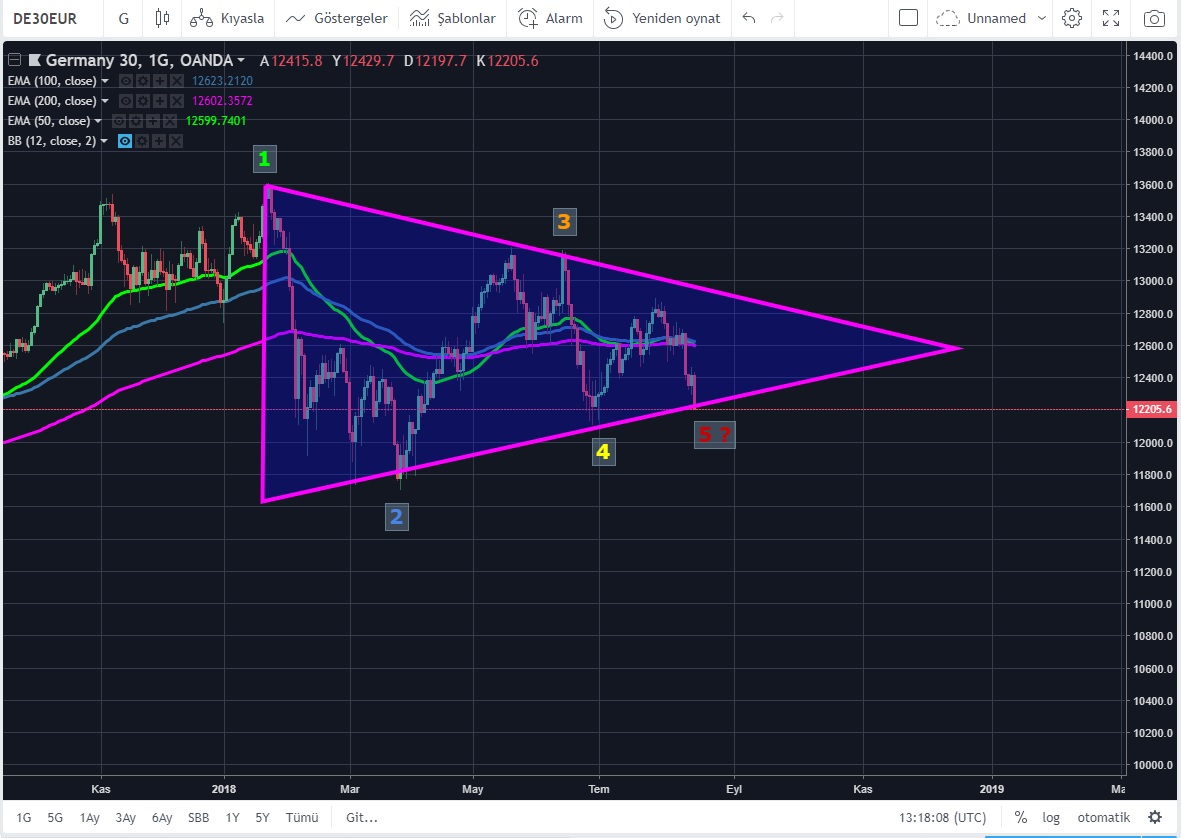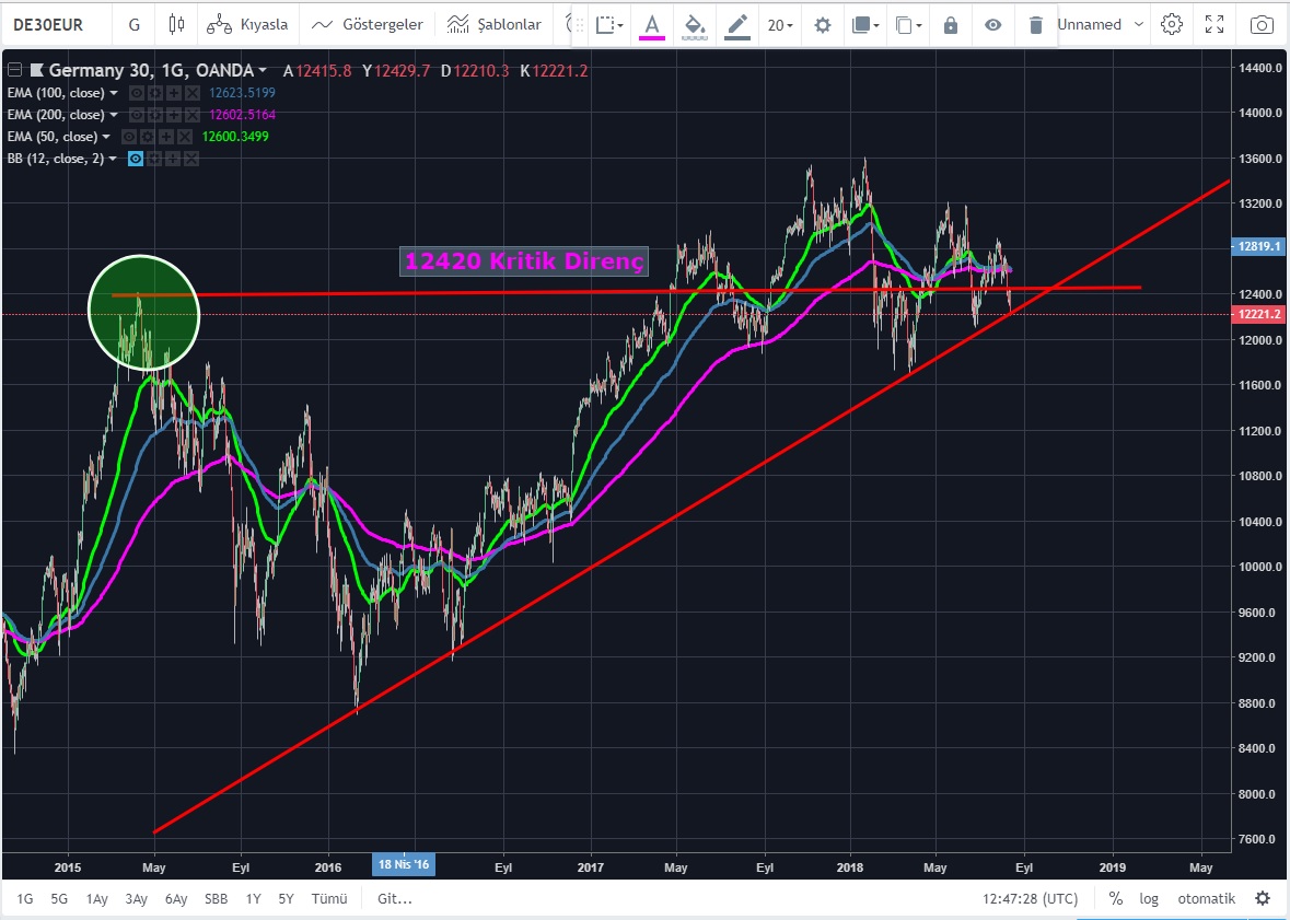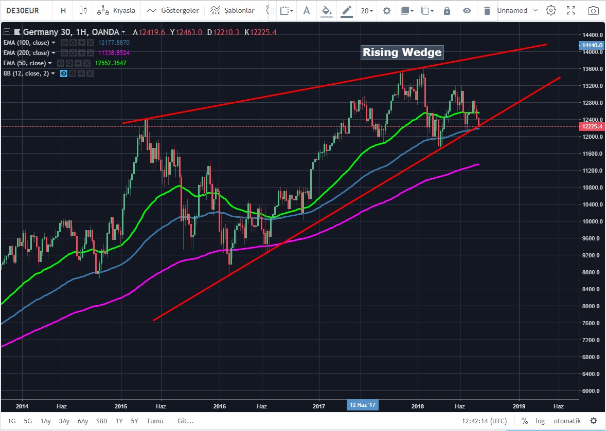 Ticaret savaşlarının etkisi ile oluşan risk off modu Avrupa'nın lokomotifine de ivme kaybettirmeye başladı. Daha önce DAX için Yazın'ın Sona erebileceğini belirterek, konuştuğumuz kısa vadeli