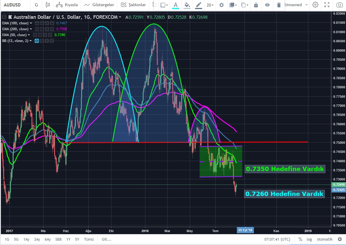 Benim asıl takip ettiğim ise 0.7250 desteğinin kırılması ile