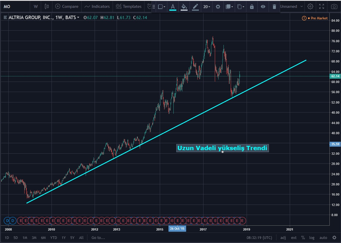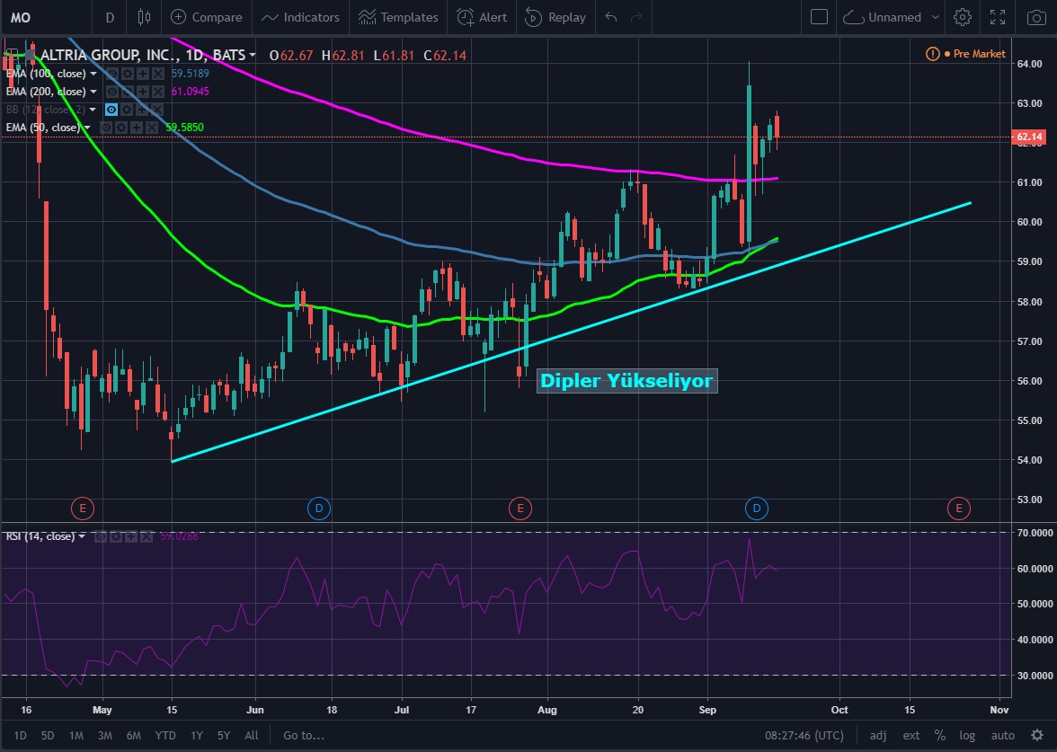 Bu gelişmeler eşliğinde Altria hisse senedine teknik olarak bakarsak
