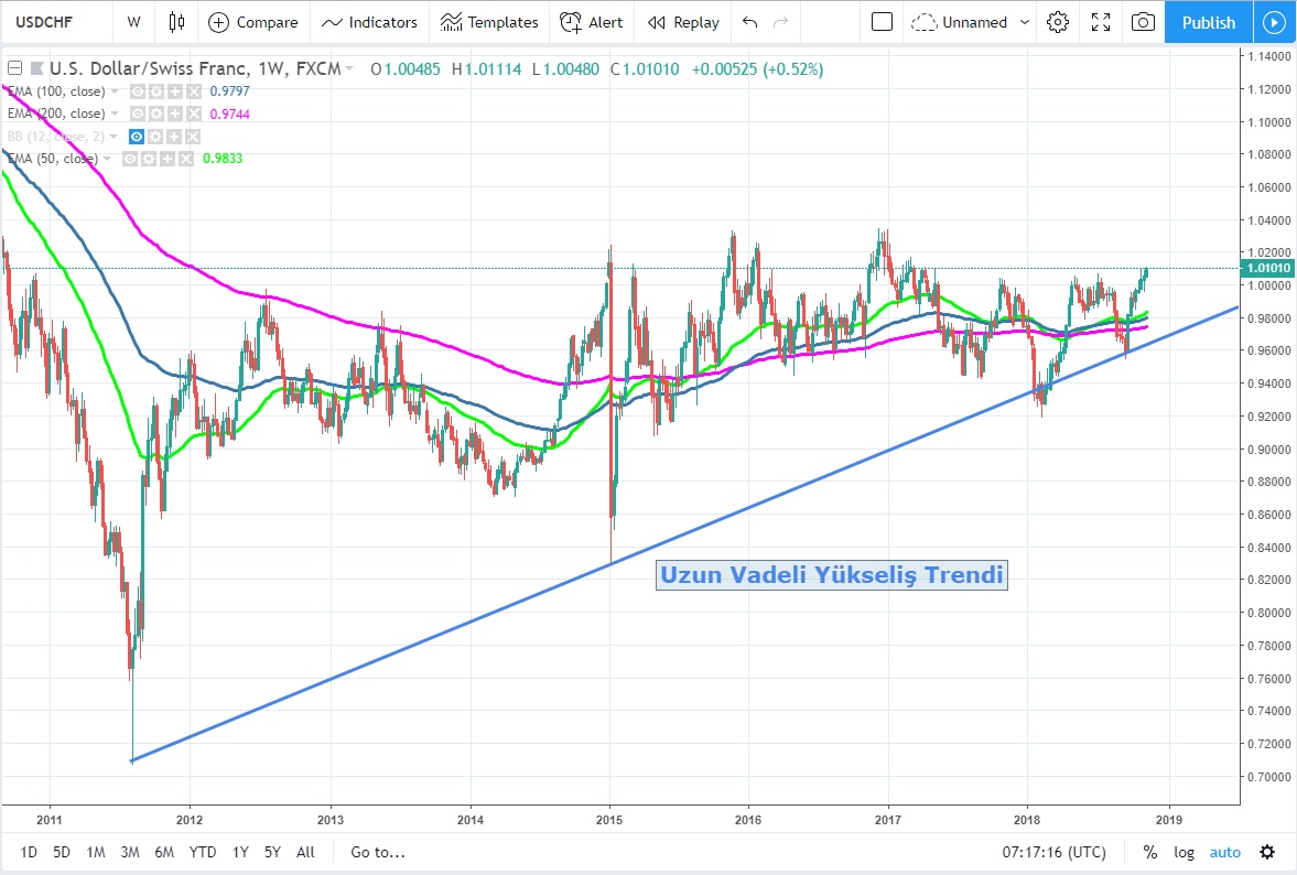 Haftalık grafiklerde uzun vadeli yükseliş trendini koruyan paritenin