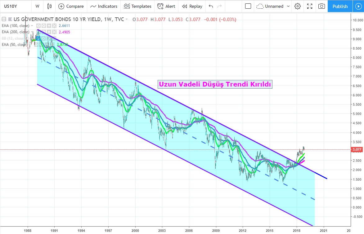 Uzun vadeli grafiklerde düşüş trendini kıran 10 Yıllıklar aynı zamanda hareketli ortalamaları altına destek olarak almış durumda