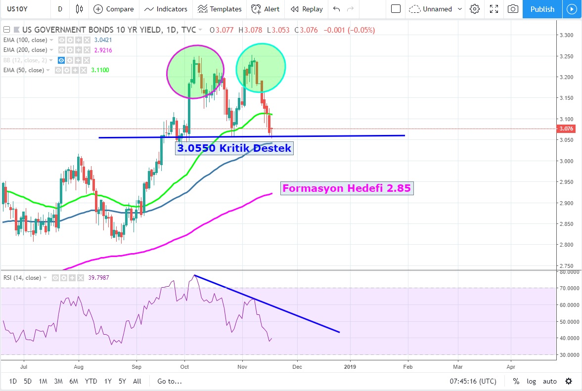 3.0550 desteğinin kırılması ile 2.85 seviyesine doğru olabilecek geri çekilmelere
