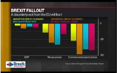 BOE, anlaşmasız Brexit'in İngiliz ekonomisinde %8'lik bir düşüşe, Stelrin'de ise %25'lik değer kaybına neden olabileceğine dikkat çekti.