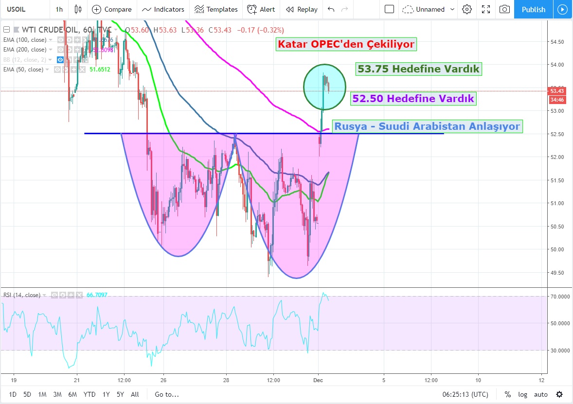 Öte yandan yeni gelen habere göre Katar 2019 Ocak ayından itibaren OPEC' den çıkacağını açıkladı http://www.cnbc.com/2018/12/03/qatar-to-withdraw-from-opec-as-of-january-2019.html