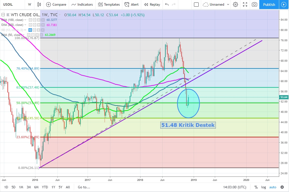 Haftalık grafiklerde 51.48 desteği üzerine atan aktif vadeli kontratlar