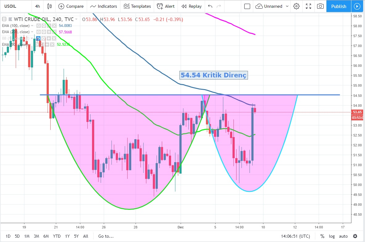 51.48 USD seviyesinde başlattığımız potansiyel uzun pozisyonda 54.54 direncinin geçilmesiyle