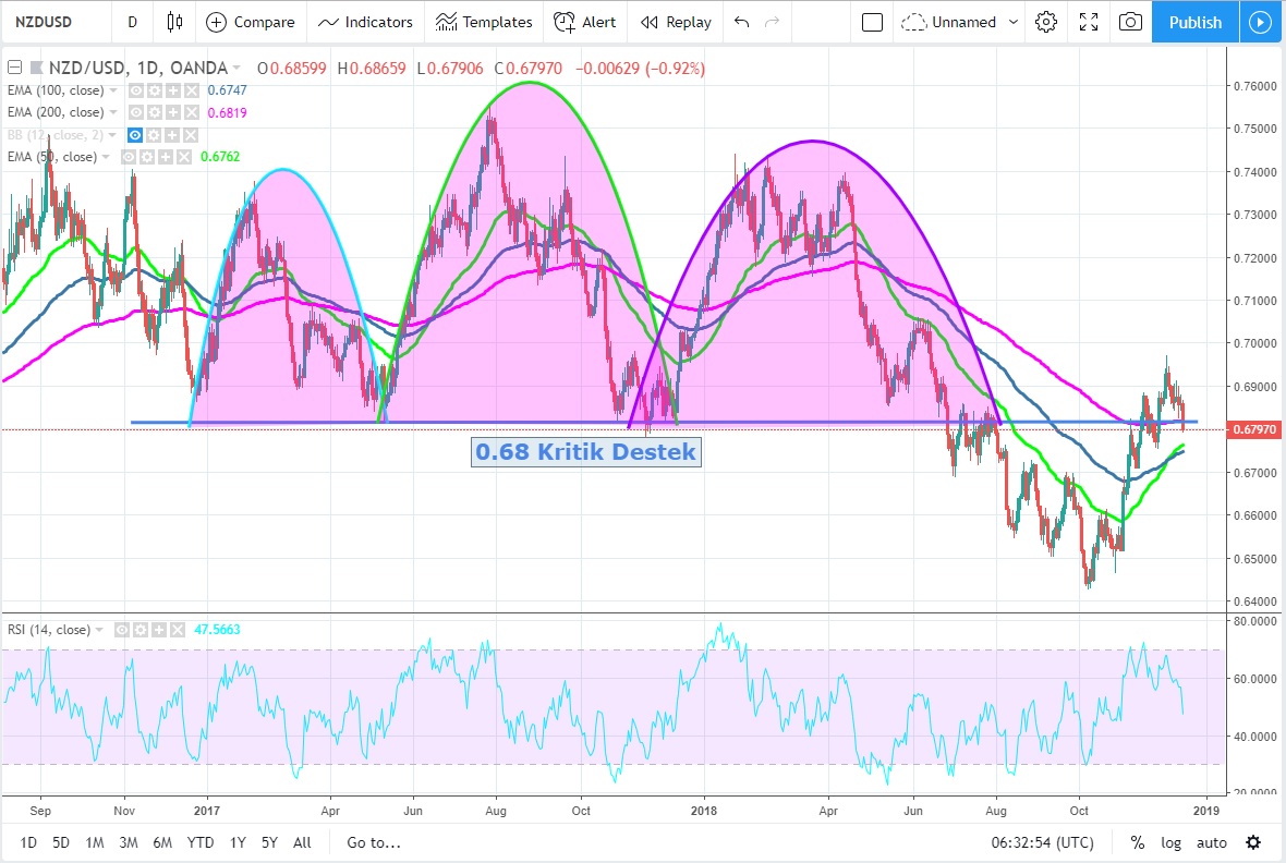 Günlük grafiklerde indiğimizde ise OBO formasyonu tekrar çalışmaya başladı ve 0.68 altında günlük kapanışlar teknik olarak kırılımı teyid edecektir.