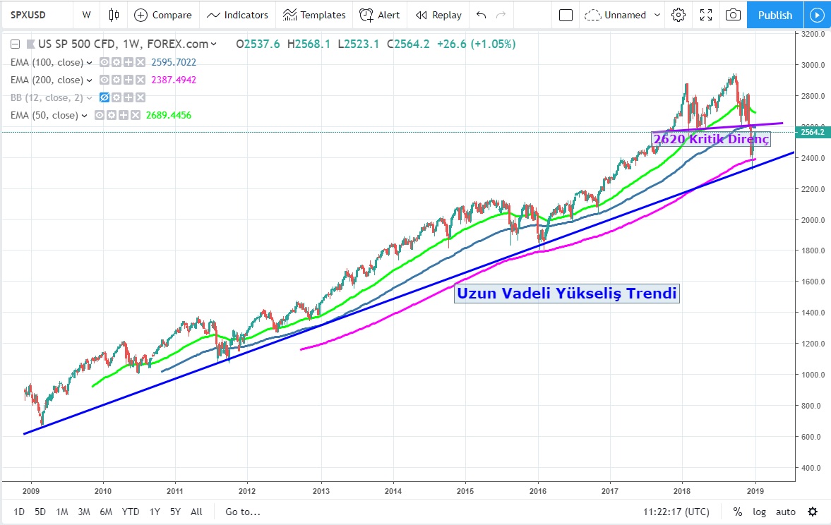 9 yıllık yükseliş trendinin test edildiği S&P500'de bundan sonra takip edeceğimiz seviye 2300