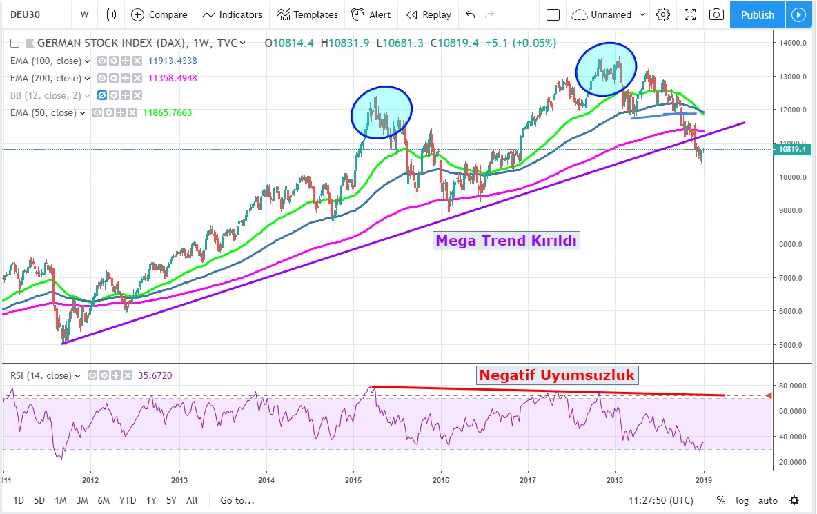Uzun vadeli hareketli ortalamalar altında kalan endeksin 11500 üzerine çıkamadığı sürece baskı görmesini beklerim