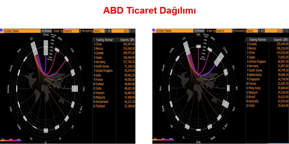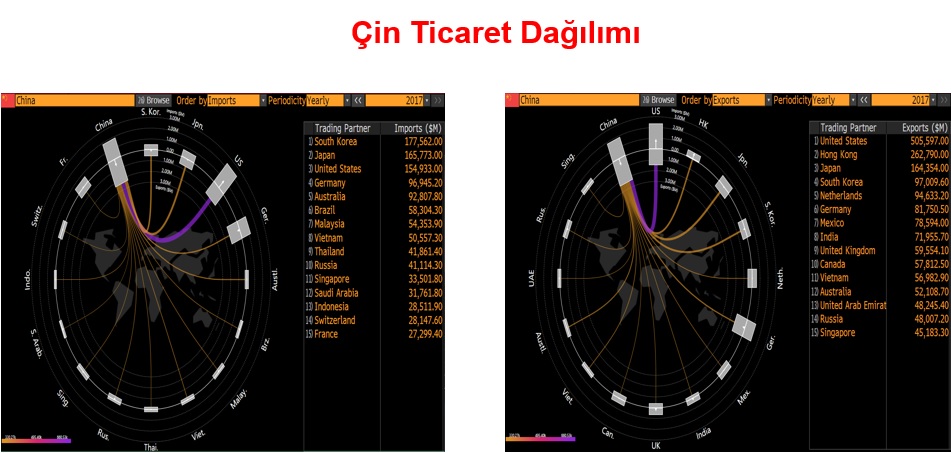 Çin'in ABD'den yıllık ithalatı 155 milyar USD iken ABD'ye ihracatı 505 milyar USD