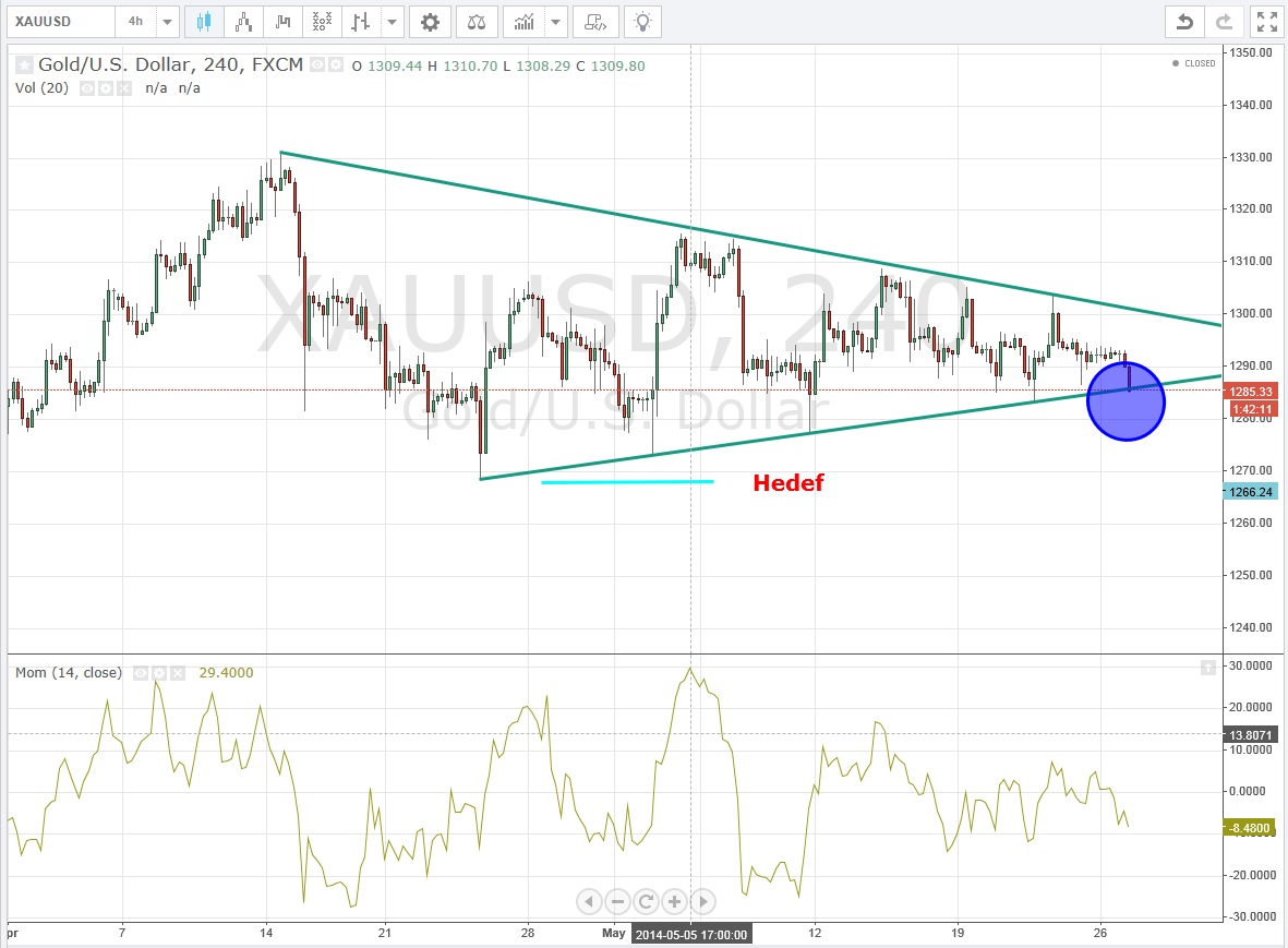 Lafı fazla uzatmadan teknik olarak 1285 altında kaldığı sürece altında ilk hedefin 1270 dolar onz olacağını düşünüyorum. Bunu ben değil günlük ve daha kısa vadeli grafiklerde oluşan üçgen formasyonu söylüyor :)