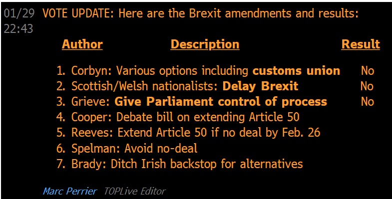 Dominic Grieve tarafından önerilen 3. madde olan Brexit sürecinin, İngiliz Parlamentosu'na bırakılması teklifi 301'e karşı 321 oyla reddedildi.