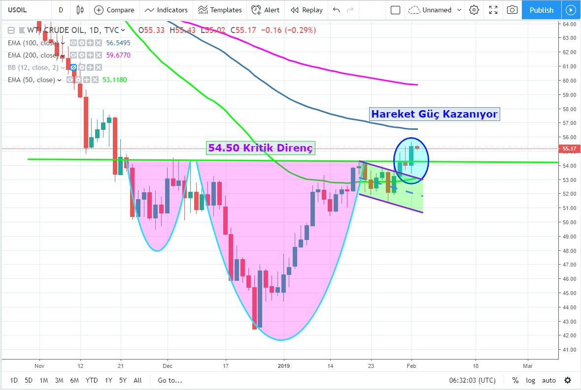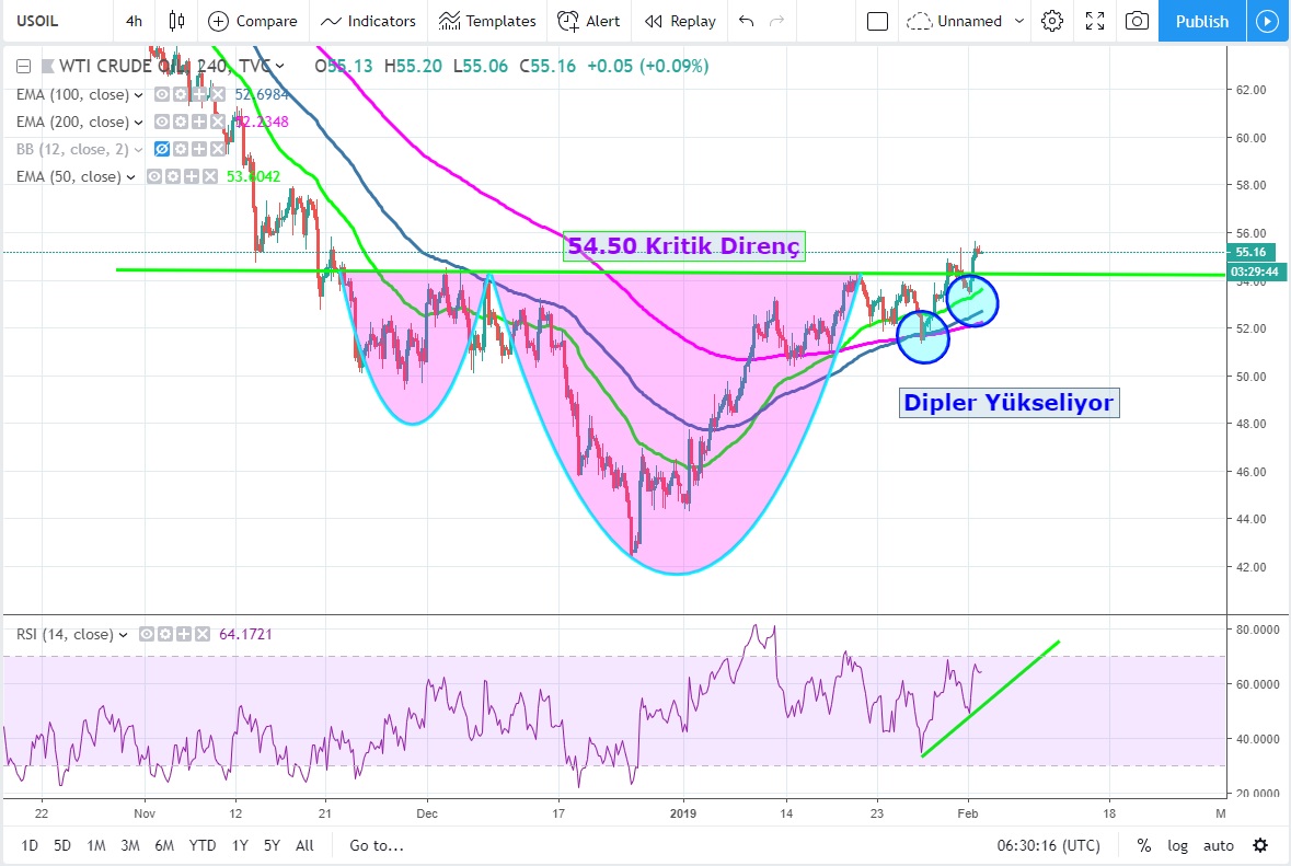 53.30 USD üzerinde kaldığı sürece hareketin güçlü kalmasını, yeni oluşacak dibinde 54.50 USD üzerinde olmasını bekliyorum