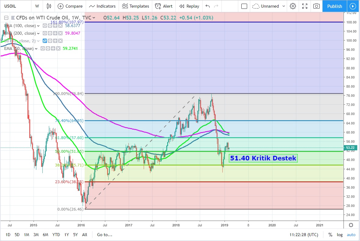 Uzun vadeli grafiklerde kritik 51.40 desteği önemli. Bu seviye korunduğu sürece petrol fiyatlarında yükseliş hareketi güçlü kalmaya devam edecektir