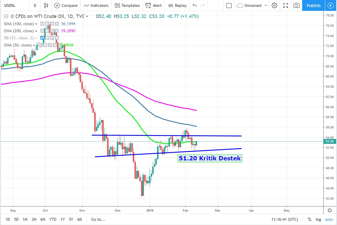 54.50 hedefli uzun pozisyonlar denenebilir ancak büyük hareket için 54.50 USD günlük kapanışları görmekte fayda var