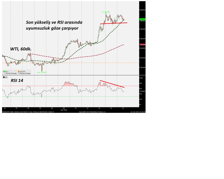 Bugün ise şu ana kadar fiyatları tekrar yukarı yönlü tetikleyici bir haber henüz duyulmadı/görülmedi .Bu doğrultuda kısa vadede hızla artan fiyatlara bir düzeltme gelebilir . Mevcut emtialar arasında ise dikkatimi WTI 'da kısa vadeli uyumsuzluklar çekti.
