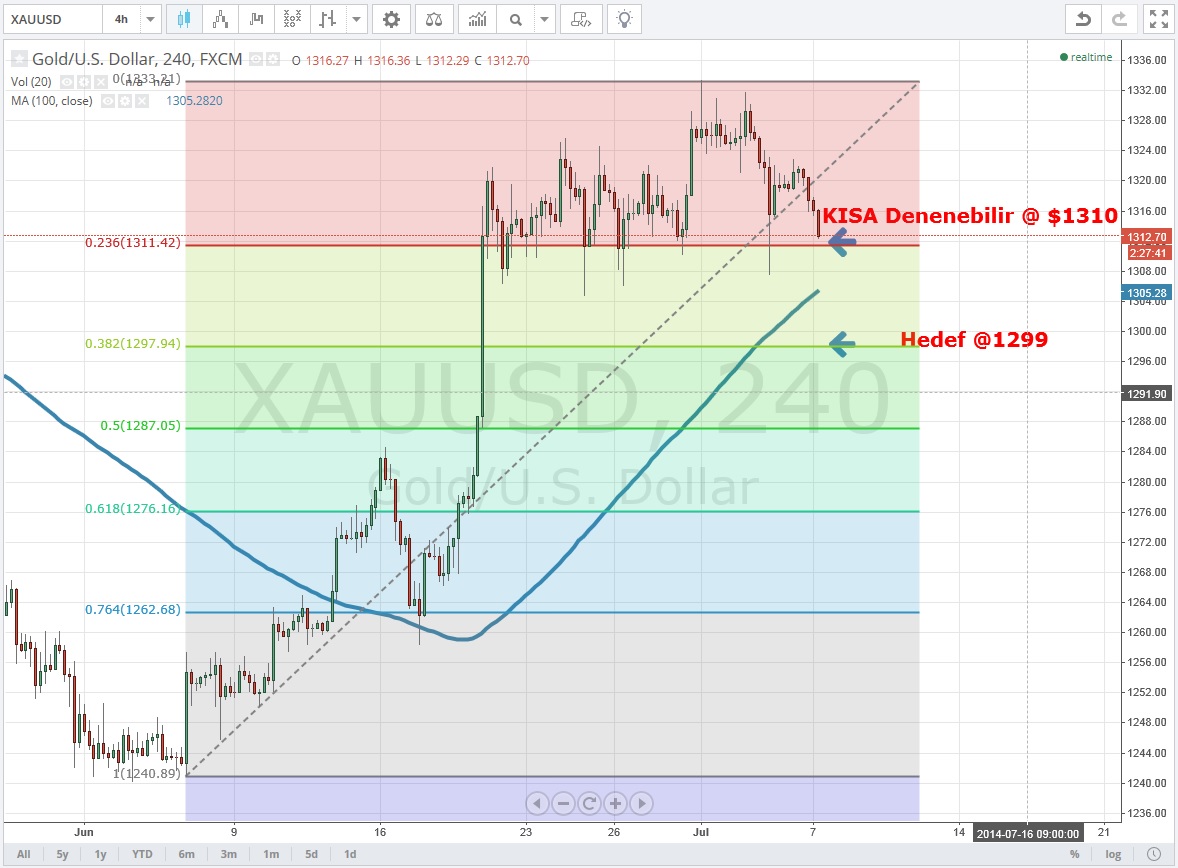 Teknik olarak baktığımda @1310 USD altı görüldüğü taktirde ilk hedef $1307 USD buranın kırılması ile birlikte hızlanan satışlar ile de Kısa Vadeli ana Hedef @1299 USD seviyesi olur .