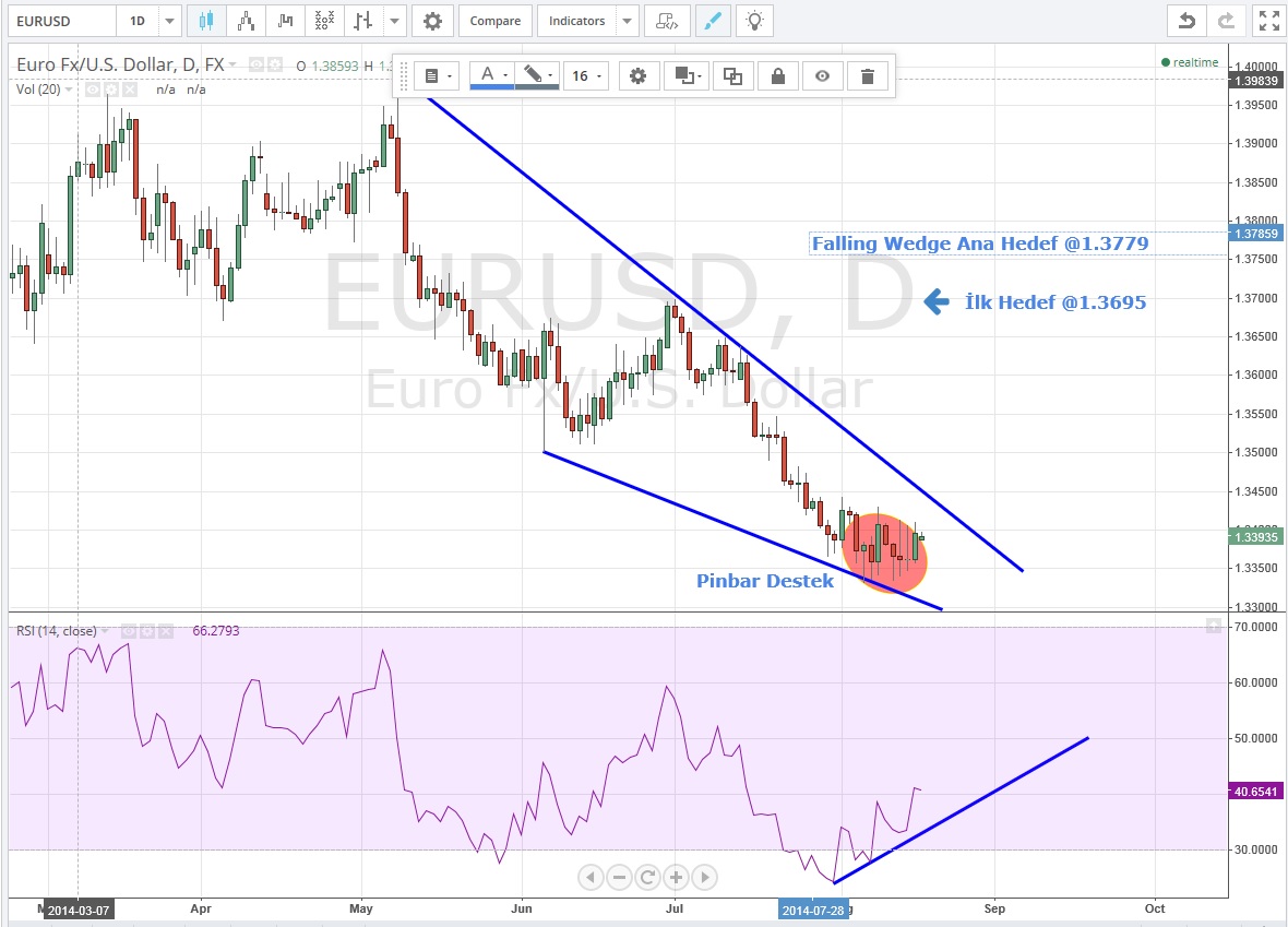 Haftalık grafikde 22 haftalık desteğine oturmuş olan bir EURUSD