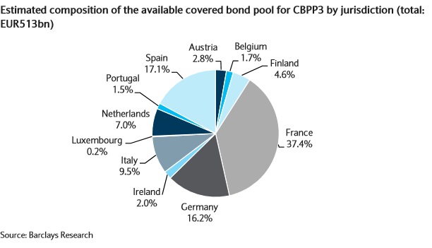 ECB daha önce iki operasyonla 2009 ve 2011’de CB almıştı. Bu programların toplam büyüklüğü 100 milyar euro iken alımlar 76 milyar euro ile sınırlı kalmıştı. ECB’nin o gün uyguladığı ortalama kriterleri uygulayınca (500 milyon euroluk paketler halinde ihraç edilmiş, 4 kabul gören rating kuruluşunun en az birinden yatırım yapılabilir ratingi olan, itfasına 1 ile 10 yıl arasında kalmış ve EB’de ihraç edilmiş vs.) mümkün olan alım sahası 500 milyar euroya kadar geriliyor. ECB’nin zaten ilk iki programdan bilançosunda kalan bonoları düşünce geriye 460 milyar euro civarında bir havuz kalıyor. Bu havuzun da %70’i Fransa, Almanya ve İspanya’da konsantre durumda.