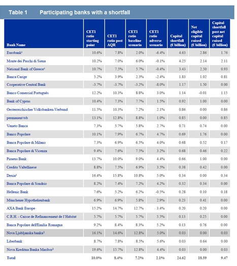 2013 yılı rakamlarına göre alınan sonuçlara göre 24 bankanın yaklaşık 24 milyar euroluk sermaye açıkları var. Veriler 10 ay önceye ait olduğu için arada geçen süre içinde bankaların gösterdikleri eforu da hesap etmek gerekiyor. Bu sebeple, Aralık ayından sonra yeniden yapılanma planlarını ECB’ye sunan Yunan bankaları ve sermaye artırarak açığını kapatmış bankaları da hesaba katmak gerekiyor.