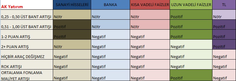 Açıklama sonrası ilk gelecek tepkileri bir kenara bırakırsak, son derece karmaşık bir karar verme kümesi sonrasında TL varlıklarda ve TL’nin kendisinde meydana gelebilecek etkileri bir matriste toplamaya çalıştık. Bu yüzden şemanın bir fikir verebileceği kanaatindeyim.