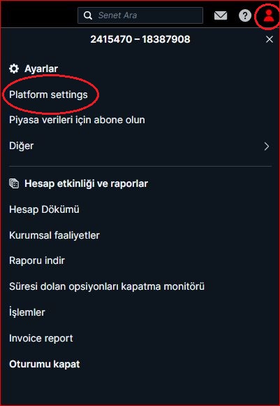 1. Sağ Üst köşede “Profilim” ve ardından “Platform Settings” e tıklanır.
